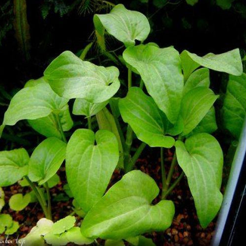 Leaves: Heart-shaped, glossy green, adding vibrant contrast to your tank.